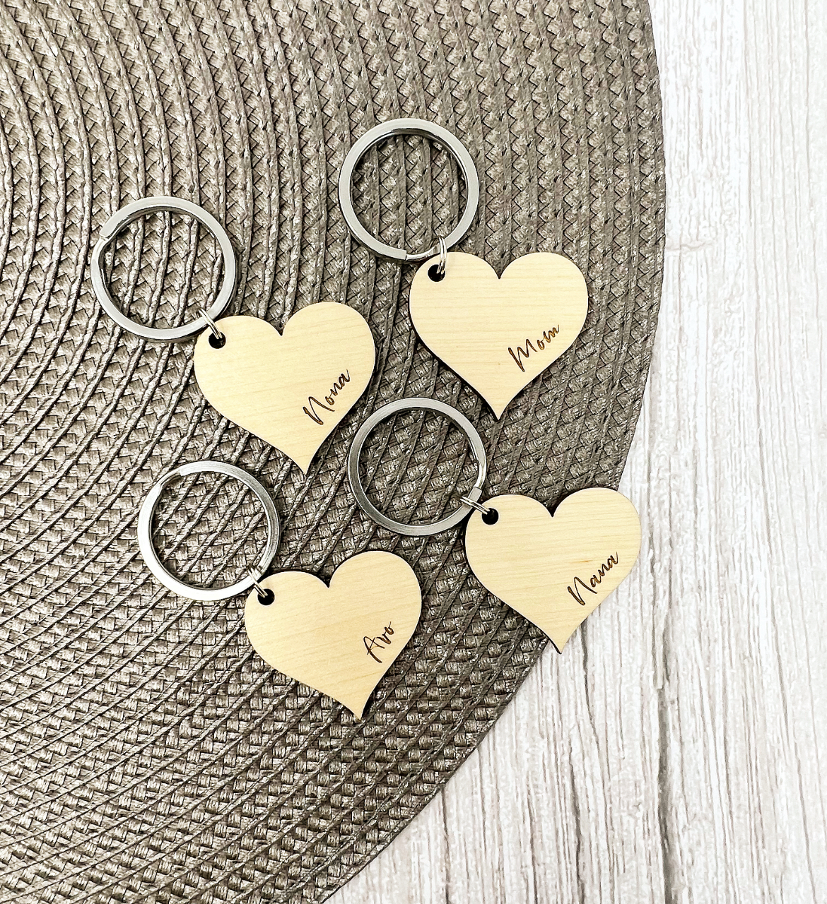 Each keychain is unique and may vary slightly from the grain and shade of wood.