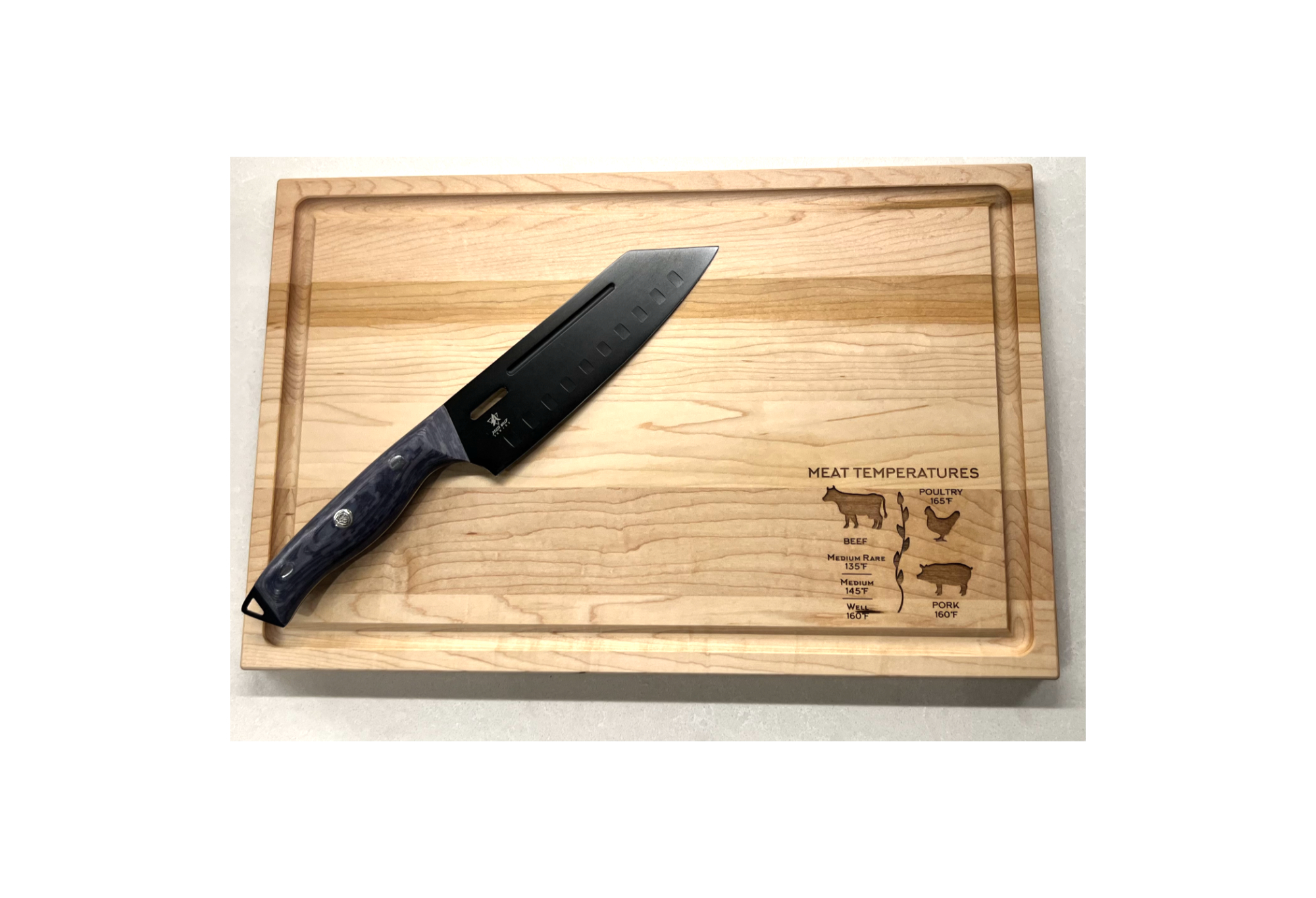 We use a CO2 laser engraver that burns and etches the wood. We do not stain the cutting boards. The color you see reflects the natural color of the wood. The engraving on walnut is more subtle than on maple. Due to the natural variations in wood, each cutting board is unique and you may notice slight variations in color, tone, grain and engraving from the pictures shown in our pictures. This just makes your cutting board one-of-a-kind!